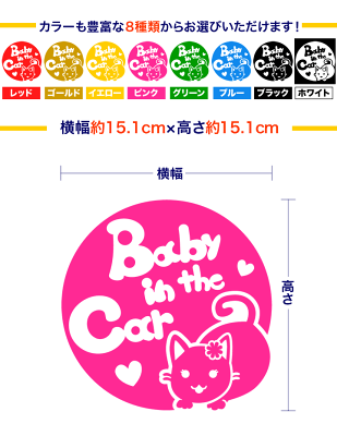 P10倍5/31まで!! ★ 【Baby in the car】 猫 ネコ ボンベイ 女の子 花 ハート 動物 ステッカー シールタイプ 車 ※吸盤・マグネットタイプではありません 赤ちゃんが乗っています ベビー イン ザ カー ベビーオンボード チャイルドシート ベビーインカー