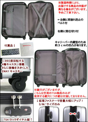 【TSAダイヤルロックの注意点】 鍵穴がございますが、こちらは空港のTSA職員のみが使用する 鍵穴につき、鍵は付属しておりません。