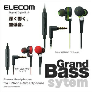 便利雑貨 ELECOM スマートフォン用ステレオヘッドホンマイク(耳栓タイプ) EHP-CS3570BK/RD ブラック